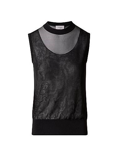 Этот многослойный полу-прозрачный топ без рукавов от Akris punto разработан с круглым вырезом и резинкой по краям.