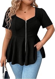 Повседневная блуза Soly Hux для полных женщин с короткими рукавами, сердечным вырезом, молнией и рюшами