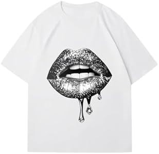 Повседневная уличная футболка Verdusa с винтажным круглым вырезом, коротким рукавом и принтом губ