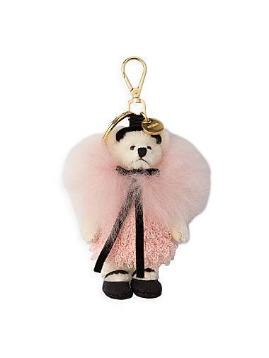 Prada Брелок-ключница в форме плюшевого медвежонка из стали и меха с карабином и кольцом