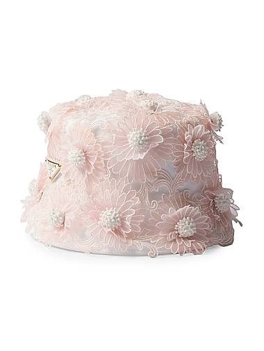 Prada Капор с вышивкой гипюром, тройной логотип, 100% переработанный полиамид, хлопковая подкладка, сделано в Италии