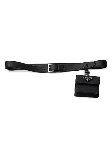 Prada Кожаный сафьяновый ремень с мини-кошелёчком, металлической пряжкой и эмалированным логотипом, высота 2,2 см
