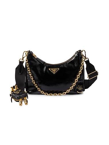 Сумка через плечо Re-Edition 2005 выполнена из лакированной кожи, придающей дизайну особый блестящий эффект и текстуру с винтажным очарованием.