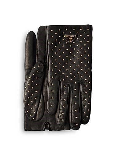 Prada Перчатки из мягкой кожи наппа с мини-шипами, кашемировая подкладка, 100% овечья кожа, сделаны в Италии
