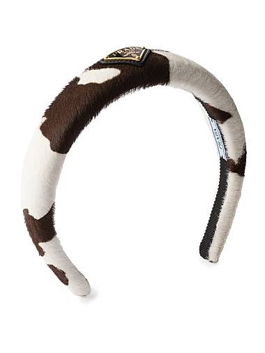 Prada Роскошная кожаная повязка на голову с эмалевым треугольным логотипом, высота 6.4 см
