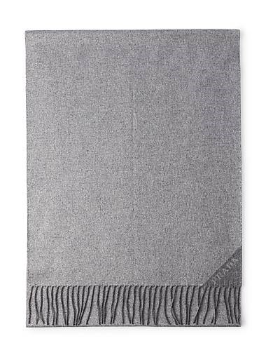 Изящная смесь шелка и кашемира подчеркивает утонченный дизайн этого шарфа, дополненного элегантным блеском металлической нити. Удобный аксессуар с бахромой по краям украшен жаккардовым логотипом.