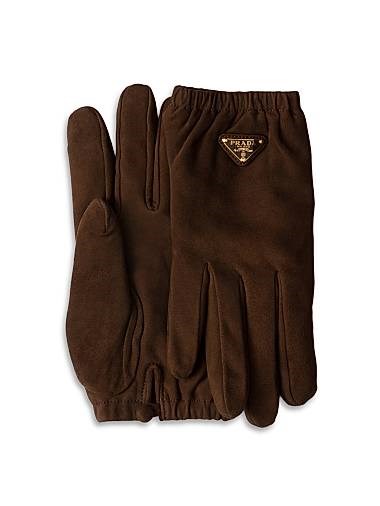 Prada Замшевые перчатки с кашемировой подкладкой, 100% овечья кожа, эмалированный логотип, произведены в Италии