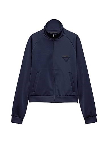 Приталенная куртка Prada из технической ткани с застежкой-молнией, длинными рукавами и стоячим воротником