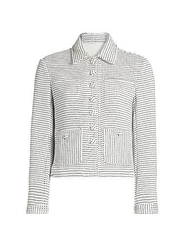 This Osler tweed jacket from Proenza Schouler White Label, tailored in a slim-fitting silhouette, features a dot motif, a point collar, and side patch pockets.