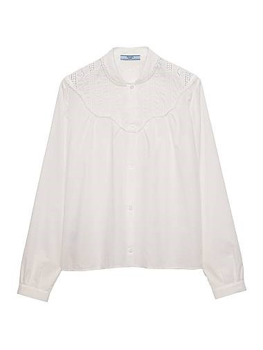 Прямая рубашка из вышитого батиста Prada с округлым воротником и длинными рукавами
