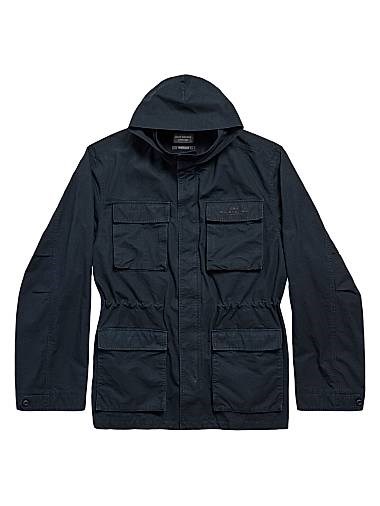 Пуховик Uniform Parka Balenciaga из хлопкового рипстопа с капюшоном и вышивкой на груди