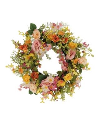 Puleo International Венок весенний искусственный с розами, деревом и маргаритками, 61 см, для внутреннего и наружного использования