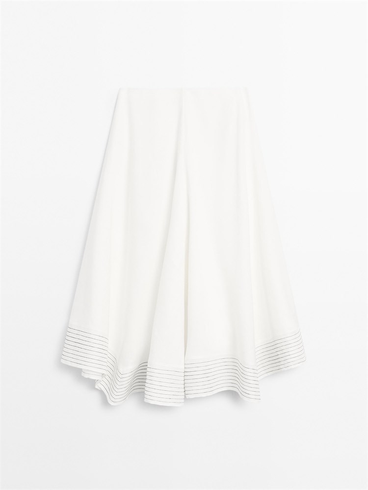 Расклешённая миди-юбка из льна с боковой застёжкой и подкладкой, Massimo Dutti