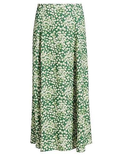 Юбка Zoe из цветного крепа от Reformation обладает струящейся силуетом с аккуратными складками и высоким разрезом по боку.