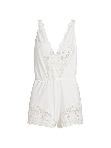 Комбинезон для сна из коллекции Romanza от Cosabella выделяет V-образный вырез с кружевными вставками для романтичного образа.