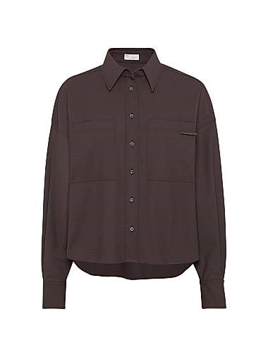 Роскошная тропическая шерстяная рубашка Brunello Cucinelli с блестящей планкой, 75% шерсти