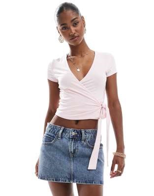 Розовый короткий топ из мягкого джерси с завязкой и короткими рукавами от Miss Selfridge