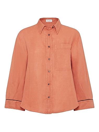 Рубашка Brunello Cucinelli из льна и хлопка с длинными рукавами, яркими манжетами и классическим воротником