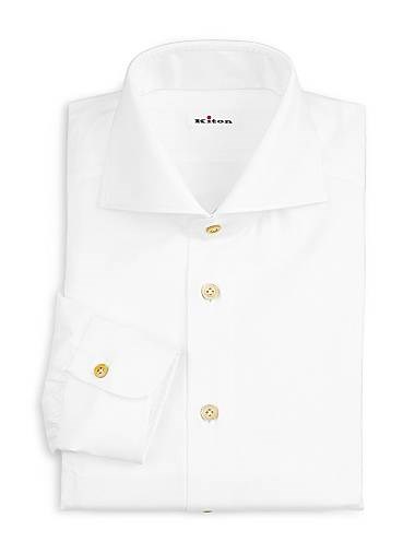 Рубашка из хлопкового поплина Kiton выполнена с контрастными пуговицами на планке и манжетах. Удлинённые рукава и раздвиженной воротник придают стилю изысканную структуру.