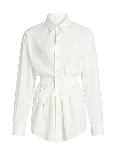 Рубашка из хлопкового поплина с разрезным воротником и затянутой талией от MM6 Maison Margiela, Италия