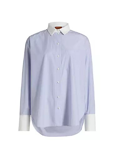 Рубашка Crosby от Jamie Haller выполнена в свободном стиле, вдохновленном мужской модой. Она из японского полосатого хлопка и имеет традиционные контрастные манжеты.