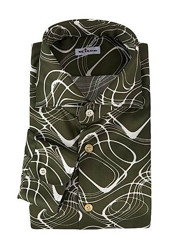 Рубашка Kiton из 100% хлопка с абстрактным волнистым рисунком и округлыми манжетами, Италия