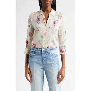 Эта рубашка с цветочным принтом выполнена из гладкой вискозы и имеет рукава три четверти с двумя пуговицами на манжетах.