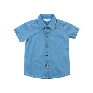 Сохраняйте стиль вашего мальчика непринужденным и модным с нашей рубашкой с коротким рукавом из светлого денима. Изготовлена из мягкой, дышащей ткани, эта универсальная модель имеет классический воротник и свободный крой для комфорта на протяжении всего дня.