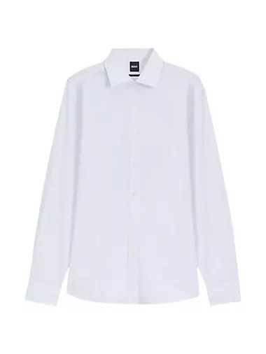 Изготовлена из качественного хлопкового поплина, эта рубашка от BECKHAM x BOSS станет необходимым элементом для делового стиля. Силуэт с узким кроем придаёт ей элегантный вид.