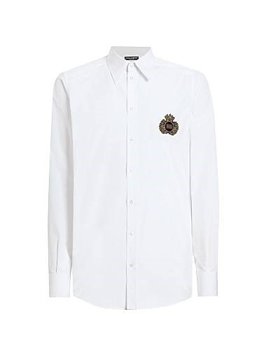 Рубашка с вышитым логотипом из хлопка от Dolce &, Gabbana, с расклешённым воротником и длинными рукавами