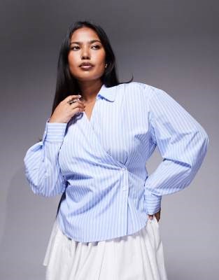 Рубашка с запахом в полоску с асимметричным дизайном и длинными рукавами от ASOS Curve