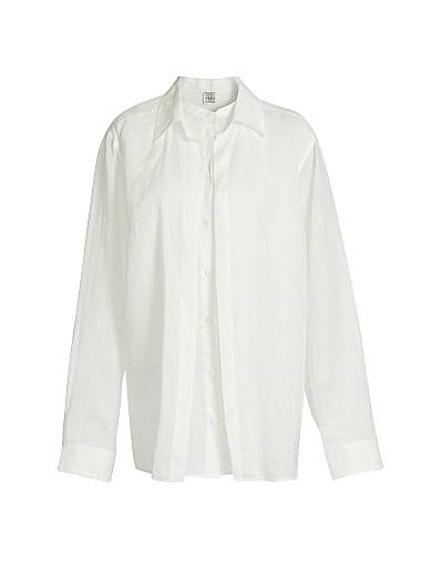Эта рубашка с двойным воротником от Toteme выполнена из полупрозрачного материала рами.