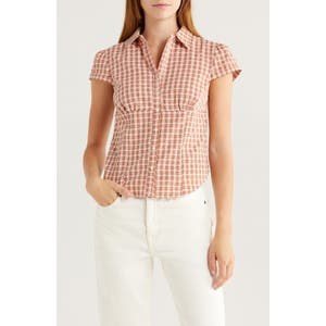 Рубашка в клетку с пуговицами от Lioness, 65% полиэстер, 35% хлопок, короткий рукав