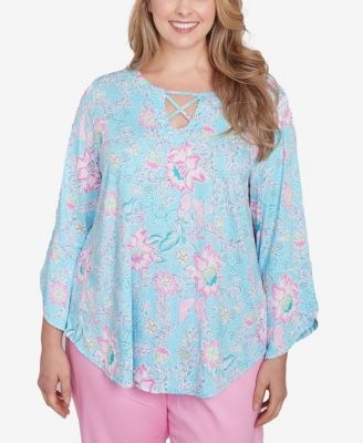 Ruby Rd. Блузка большого размера с цветочным принтом от Ruby Rd, V-образный вырез, рукава 3/4