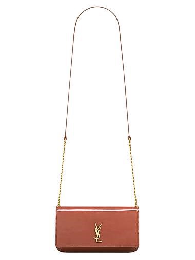 Saint Laurent Чехол для телефона из лакированной кожи с декором Cassandre, 18x11x2.5 см, с цепочным ремешком