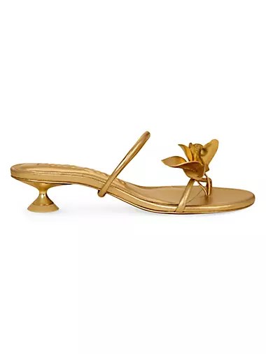 Сандалии Cult Gaia Cosette 35MM из металлической кожи с цветочной аппликацией