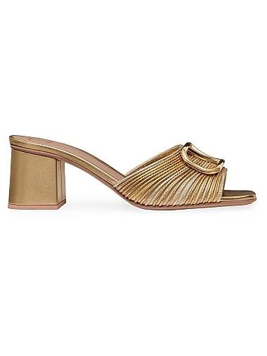 Сандалии на блочном каблуке 60 мм из ламинированной натуральной кожи с металлическим логотипом V от Valentino Garavani