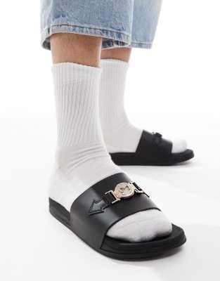 Сандалии SEQWL ITA с пряжкой на черной подошве с широким ремешком и открытым носком