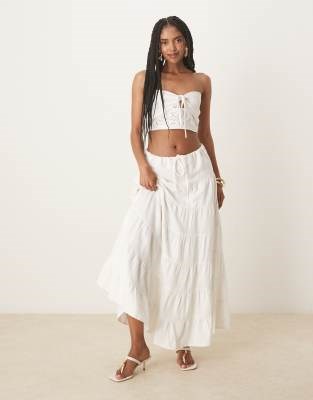 Сарафан Nobody',s Child Talia из белого льна в бохо-стиле с многоярусным кроем и завязками на талии