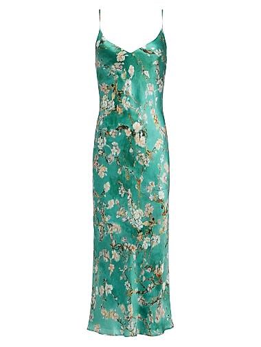 Сатиновое миди-платье с цветочным принтом, V-образным вырезом и бретелями-спагетти от L',Agence