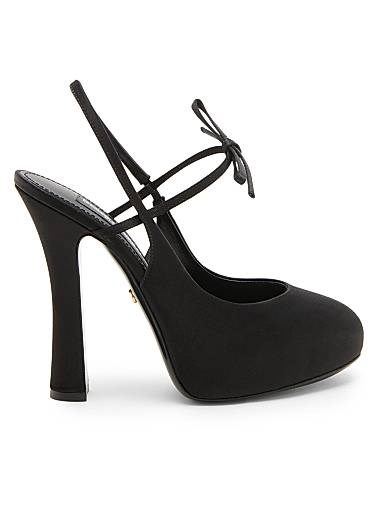 Эти туфли на платформе Dolce & Gabbana с открытой пяткой выполнены из блестящего атласа, изготовленного в Италии.