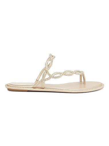 Сандалии от Rene Caovilla в классическом стиле имеют связанный ремешок, украшенный сверкающими деталями.