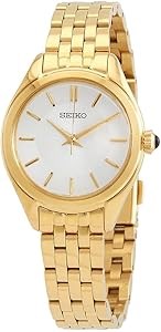 Seiko Женские часы с белым циферблатом, кварцевым механизмом, водонепроницаемыми на 50 м, стеклом Hardlex