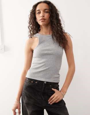 Серый молодежный топ COLLUSION с двойным слоем, спортивным вырезом и облегающим фасоном