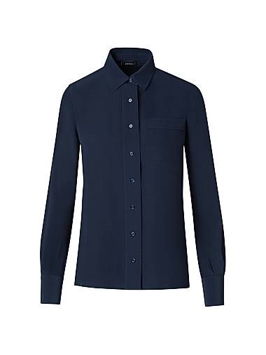 Эта классическая блуза из роскошного шёлкового крепа от Akris имеет воротник-стойку и карман на груди.