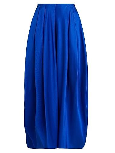 Эта эффектная макси юбка Giorgio Armani изготовлена в Италии из блестящего шелкового сатина и имеет плессированную переднюю часть.