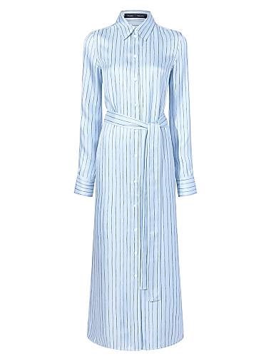 Платье-рубашка Hannah выполнено из шелкового твила и отличается элегантным воротником и длинными лонгсливами с кнопочными манжетами. Модель украшена вертикальными полосами и имеет пояс на завязках.