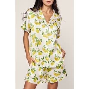 Шелковые шорты для сна с лимонным принтом и отделкой, Petite Plume