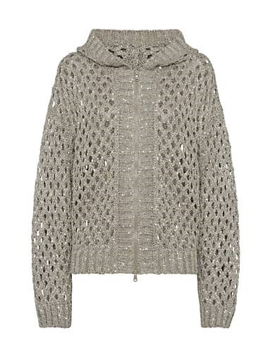 Шелковый и льняной кардиган с капюшоном от Brunello Cucinelli, двухсторонняя молния, сделано в Италии