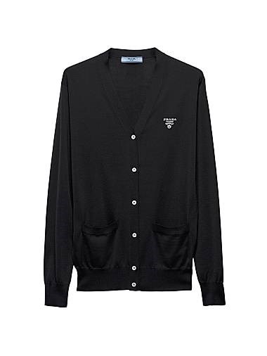 Шелковый кардиган Prada с классическими линиями и минималистичными деталями, длинными рукавами